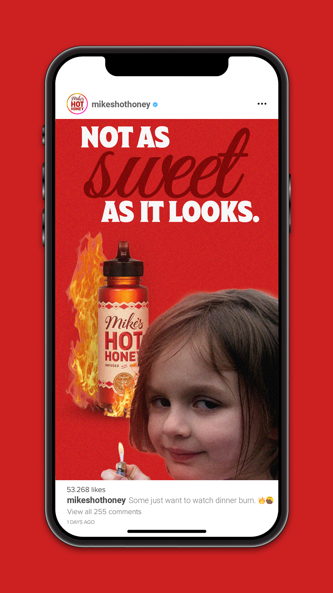 The infamous “Disaster Girl” meme had the world claiming young Emma Roth appeared deceptively sweet in front of a house fire. Mike’s Hot Honey collaborated online with the former pint-sized pyro to put her taste for heat to the test.