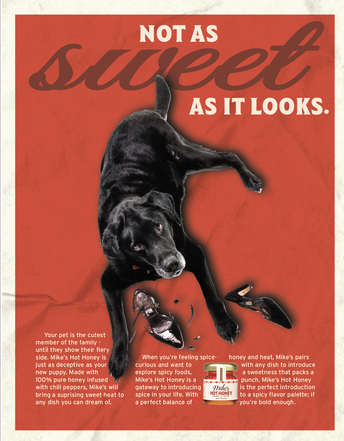If it’s too sweet to be true, it probably is. Sometimes it’s your adorable new puppy who sees everything as a chew toy, and sometimes it’s the sweet heat honey you put on your pizza. We put our print execution in modern magazines to show readers a trendy way to elevate their meals.